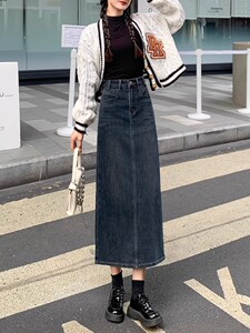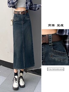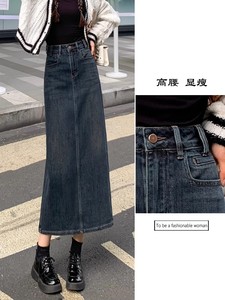 欧货牛仔半身裙女2025新款秋冬高腰包臀a字中长裙子开叉百搭显瘦
