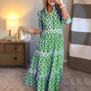 2025爆発の現物は国境を越えて欧米のアマゾンの春夏の幾何学のプリントの丸首の長いスカートのワンピースです。