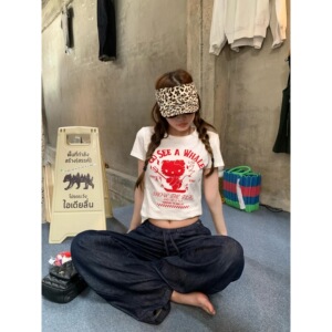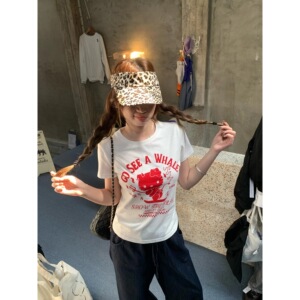 スリムフィット右肩半袖Tシャツレディース夏白2025ファッショナブルな新しいドーパミンウェアイントレンドデザイン