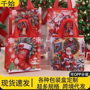 防水外卖袋圣诞节无纺布布袋批发糖果购物包装袋手提袋派对礼品袋