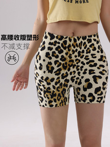 春夏用レオパード柄シームレスヨガショーツ レディース ランニングフィットネスパンツ ハイウエストヒップアップスポーツレギンス 三分丈パンツ