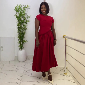 ヨーロッパとアメリカの女性のファッショナブルなハイウエストの大きな裾のドレス、クロスボーダーアフリカスタイルの多用途なミドル丈のエレガントなロングスカート夏