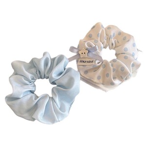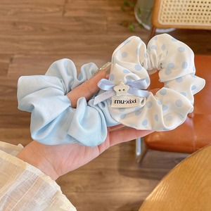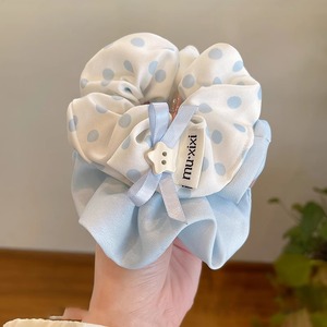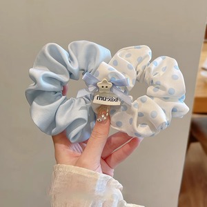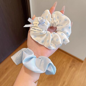 夏季清新海盐大肠发圈女学院风丸子发饰甜美蓝色波点发圈带蝴蝶结