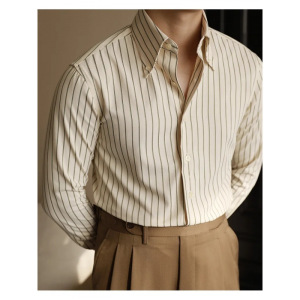 メンズカジュアルストライプシャツ長袖秋ビジネスノンアイロンスリムフィット紳士多用途ファッションチップボタンダウンシャツ