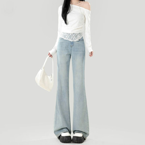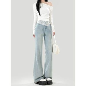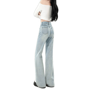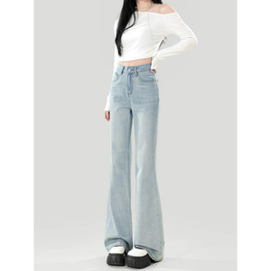 浅色高腰微喇叭牛仔裤女2025春夏季新款宽松显瘦不贴腿高个子长裤