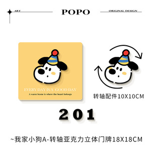 Puppy Dumb A-アクリル回転軸ドア番号-18X18CM (中央のパターンは回転可能!)-家番号に注意してください