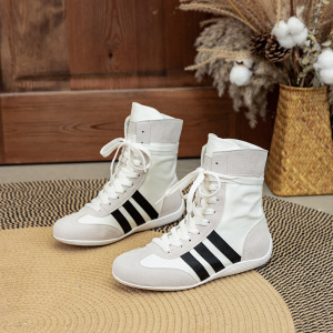 2025年 レディース ハイカット インヒール ボクシングシューズ 本革 ラウンドトゥ オールマッチ カジュアルシューズ レースアップ マーティンブーツ トレンド
