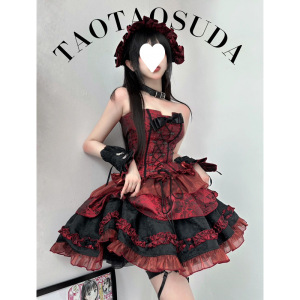 高級痩身ロリータエレガントデザイン半袖ジャケットチューブトップチュチュスカート森ガールウエストスーツ