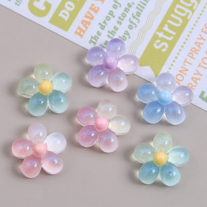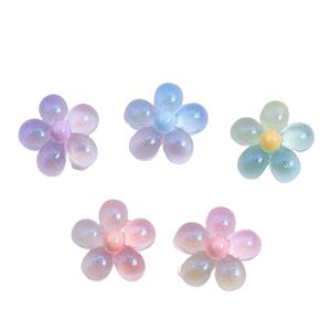 カラフルな真珠光沢のある 5 花びらの花漫画クリエイティブ手作り diy クリーム接着剤アクセサリー樹脂アクセサリージュエリー材料卸売