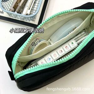 ins高颜值暗黑系列大拉链子夜黑方方笔袋简约纯色耐脏学生文具袋