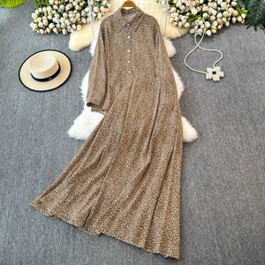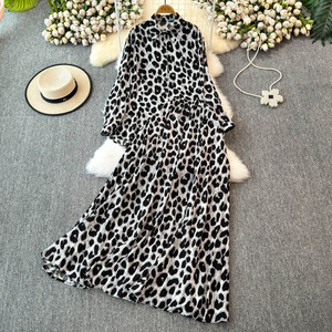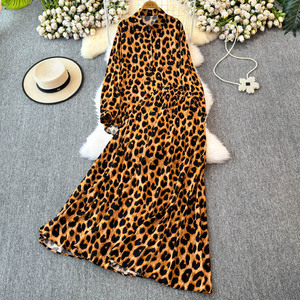 ファッションスーツレディースレトロヒョウ柄長袖シャツトップツーピースハイウエストスリムAラインスカート秋