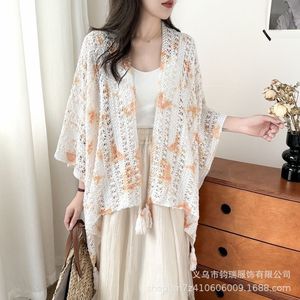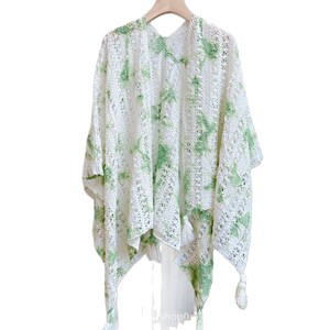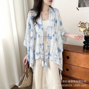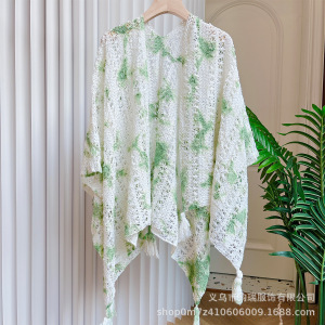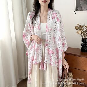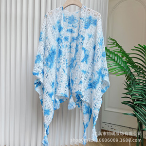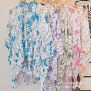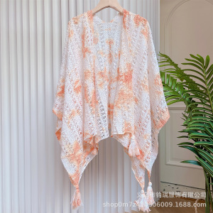春夏ニット透かし染めショール レディース 薄手 スカートに合わせる ケープ マント フリンジ加工 日焼け防止ショール