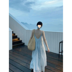 フレンチビーチリゾートスタイルヘビーデューティージャカードサスペンダードレス夏の新しい気質ルーズでスリムな妖精のロングドレス