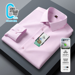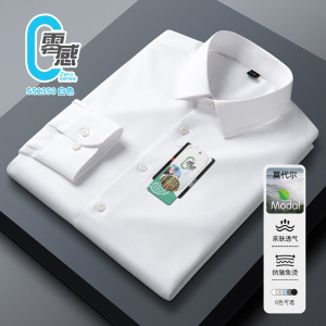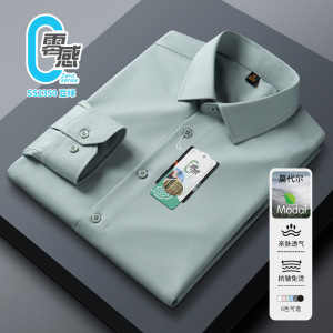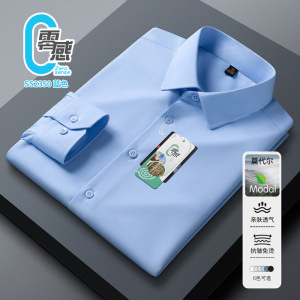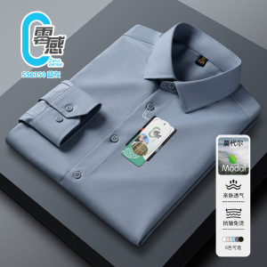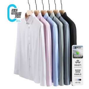 モーダルメンズシャツ2025夏新作弾力ビジネス純色正装シャツメンズ長袖