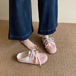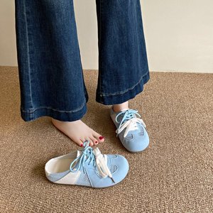 2025 春夏の新ソフトソールハーフスリッパ女性のメッシュ通気性つま先スリッパオシドリ靴ひもなしヒールなし道徳訓練靴