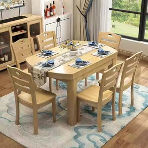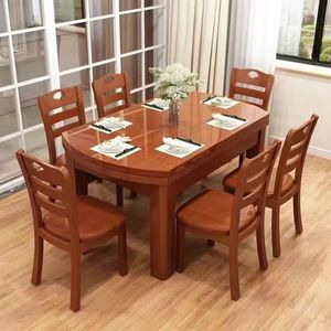 家庭用の全無垢材のダイニングテーブルと椅子の組み合わせ、小さなアパート、モダンでシンプルな伸縮式折りたたみ式の正方形と円形の兼用ダイニングテーブル、ダイニングテーブル