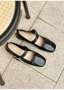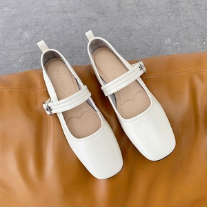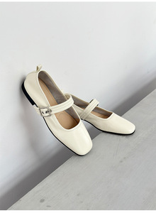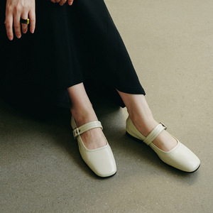 オリジナルニッチデザイナーモデル東莞ハイエンド本革レディースシューズスクエアトゥ浅い口ワンラインバックルメリージェーンシューズ