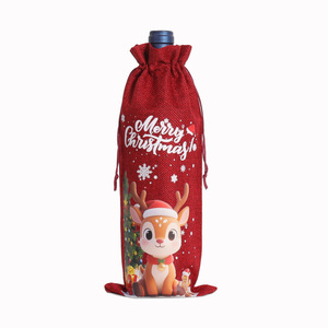 2025新款圣诞麻布酒瓶袋抽绳礼品派对束口袋红酒包装袋圣诞礼品袋