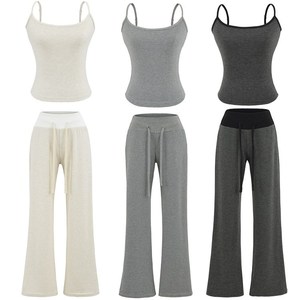 ストライプニットサスペンダーパンツスーツ女性の夏のウエストタイトトップ巾着ルーズストレートドレープフロアレングスパンツ