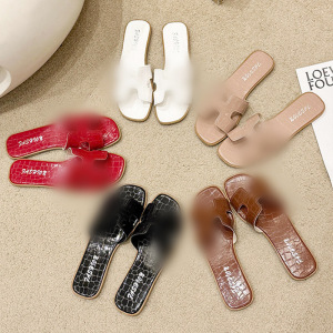 ファッションの新型のサンダルの外は女性の高級感の平底のスリッパの海辺の砂浜の柔らかい底の冷たいスリッパのメーカーの卸売りを着ます。