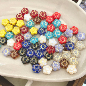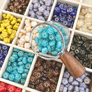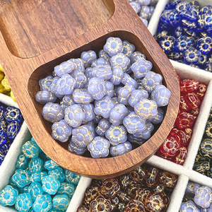 ガラスフラワービーズハワイアンフラワーマルチカラーフラワービーズルースビーズdiy手作りブレスレットネックレスジュエリーアクセサリー