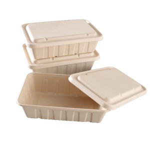 パルプ箱 大容量 サトウキビパルプ包装箱 大型 2500ml 3000ml シーフードテイクアウト弁当箱