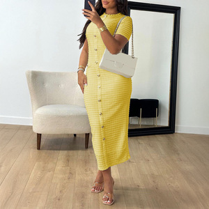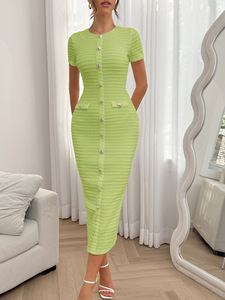 クロスボーダー欧米風ボタン付きスリムワンピース レディース 2025春夏 Amazon海外販売サイト向け ハイウエスト着痩せ効果