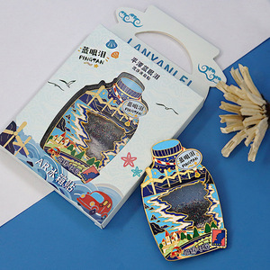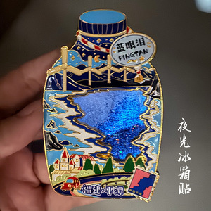 2025冷蔵庫貼り文創金属藍涙夜光流砂AR冷蔵庫貼り旅行記念品立体現物