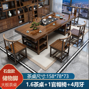 储物大板1.6米+1官帽椅4月牙椅 石盘款/双层储物脚