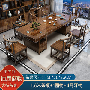 实木大板茶桌椅组合一桌五椅家用茶几茶台烧水壶一体办公室泡茶桌