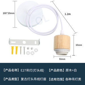 E27 ログ PVC シャンデリア ワイヤー (ログ + ホワイト) ワイヤー 1.2m