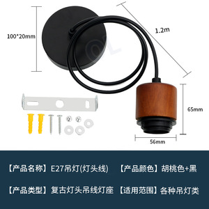 E27 ウォールナット色 PVC シャンデリアコード (ウォールナット色 + 黒ランプホルダー) ワイヤー 1.2m