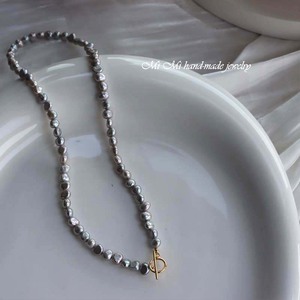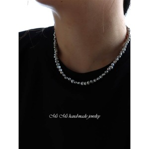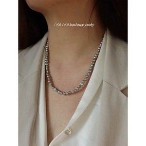 天然真珠レアリアルグレー強光ナチュラルグラニーグレーバロックパールネックレス鎖骨チェーンシンプル