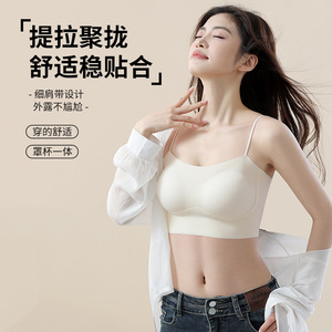 无痕抹胸上托防下垂小胸聚拢内衣女士夏天防走光薄显瘦固定杯裹胸