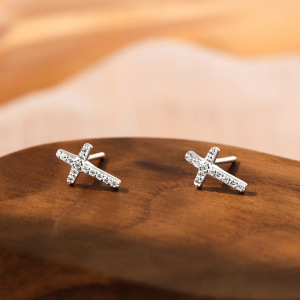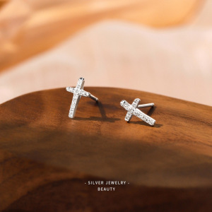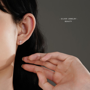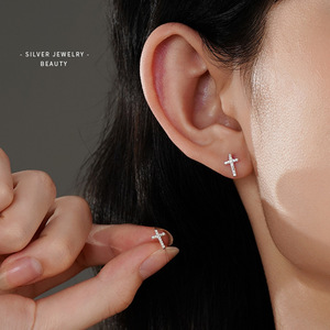 女性用ドリルクロスイヤリング S925 スターリングシルバー、トレンディでパーソナライズされた韓国スタイル、多用途、コールドスタイル、小さくて絶妙なイヤリング