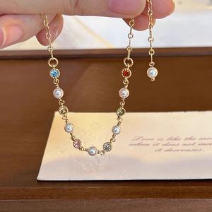 春夏カラー真珠のブレスレットの女性の軽豪華な大衆の気質の高級感の清新で甘い手の串の手は誕生日の贈り物を飾ります。