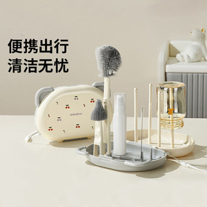 ポータブルボトルブラシセットシリコンボトル洗浄ブラシ収納ボックストラベルサイズベビーボトル洗浄ブラシ