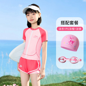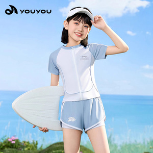 子供水着 女の子 2025年新作 スプリット日焼け止め 2点セット 中学生以上 速乾水着用品