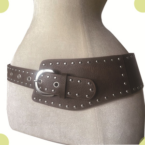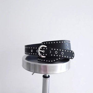 クロスボーダーの人気アメリカ式y 2kリベットのベルトの女性の新型のアーク型の小さいカーブの切れの腰は百合のワンピースのジーパンを密封します。