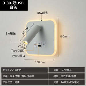 3130 デュアル USB (A+C) ホワイト (スクエア)