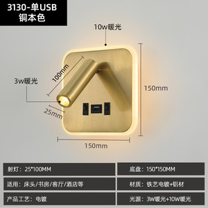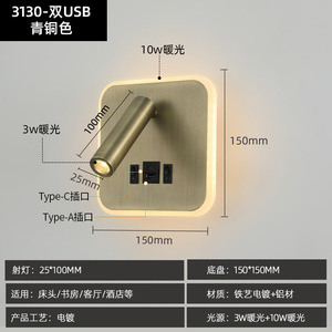 3130 デュアル USB (A+C) 銅色 (正方形)