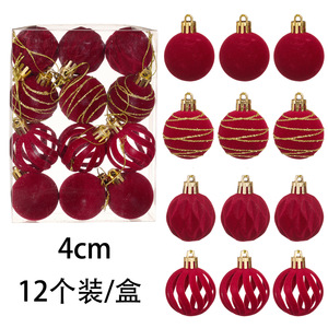 2025 セット 12 個 4 センチメートルクリスマスボール光沢のある中空植毛ツリーペンダント装飾ショッピングモールの窓の装飾