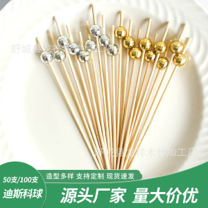 メーカーのアースシルバー装飾ピック、使い捨て竹ピック、カクテルピック、バーガーピック、ディスコミラービーズフルーツピック