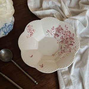 フレンチレトロフラワーセラミックプレート花びらエンボスプレート深皿スーププレートサラダプレートデザートプレートディナープレートホームプレート