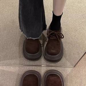 厚底レースアップローファー女性用 2025 春の新レトロカジュアル英国スタイル多用途ビッグヘッドカジュアル小さな革靴