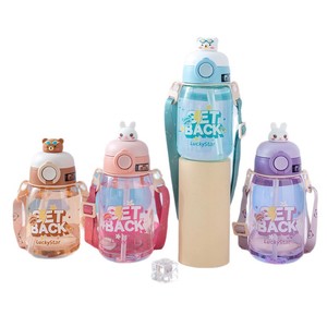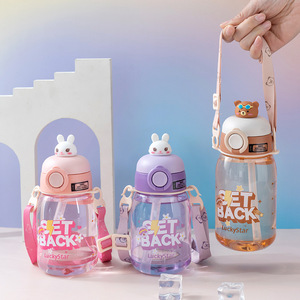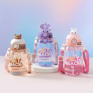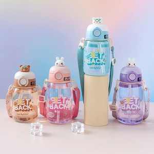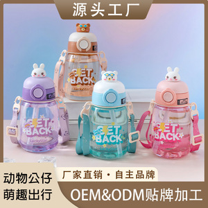 跨境便携公仔儿童水杯高颜值可爱塑料网红吸管杯男女学生吨吨水壶