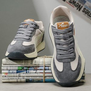メンズオールシーズン履ける快適で通気性のあるメッシュレースアップカラーブロック厚底カジュアル多用途デイリースポーツスタイルメンズシューズ