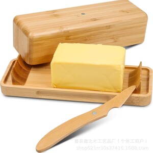 木製バター収納ボックス蓋付きキッチンデスクトップストレージバター冷蔵庫ポータブル収納ボックス食品保存ボックス