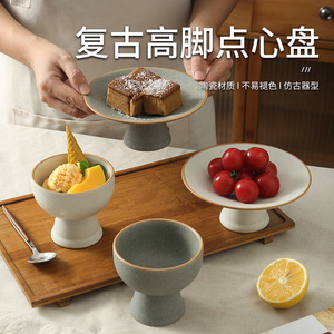 和風スナックプレートライト高級家庭用背の高いアイスクリームカップスナックティープレートセラミックホテル食器フルーツプレート