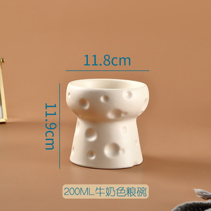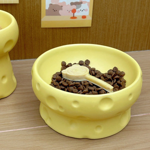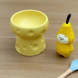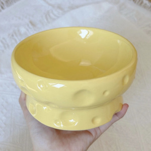 猫ボウル セラミックキャットフードボウル 背の高いフードボウル 水ボウル 平口で頚椎を保護して転倒を防止 大口径の子犬ボウル チーズ